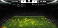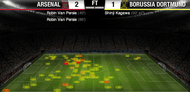 This heat map refers to the game against Borussia Dortmund at the Emirates Stadium earlier this season which portrays Alex Song’s movements/frequent touches – you’ll see that compared to the game with Fulham last season, he is in a more advanced role and covers more space around the pitch despite still playing as a defensive midfielder. Quite a difference.