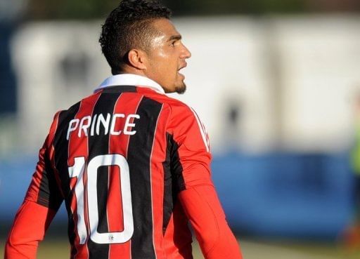 AC Milan’s Kevin-Prince Boateng shouts towards fans during his side’s friendly match against fourth-tier club Pro Patria in Busto Arsizio, Italy on January 3, 2013. Boateng caused a sensation when he walked off the pitch during the friendly match after being showered with racist abuse by opposing fans.