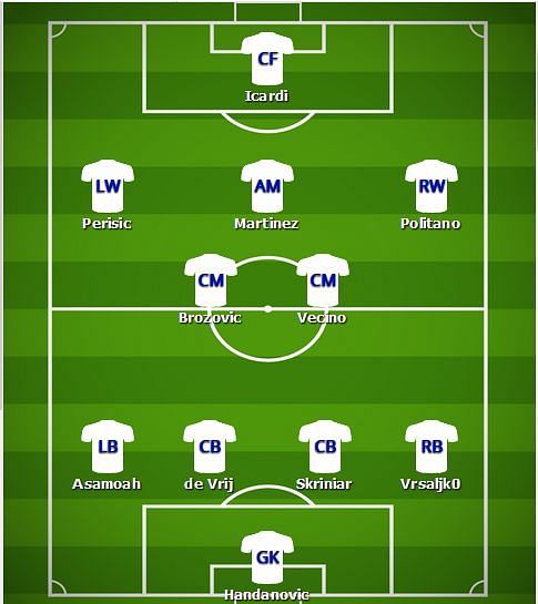 Inter will also be without their star midfielder, Radja Nainggolan, as the Belgian picked up an injury in the Milan derby. Ivan Perisic and Marcelo Brozovic are both carrying knocks, but will likely start against Barca. The most likely to step in for Nainggolan is Lautaro Martinez, the sole change from the previous game.