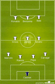 Probable line-up: Casillas; Carvajal, Pepe, Ramos, Marcelo; Modric, James, Kroos; Bale, Benzema, Ronaldo.
