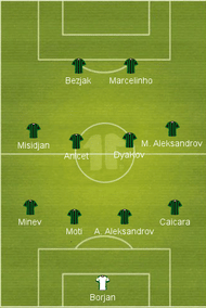 Probable starting line-up: Borjan; Caicara, A.Aleksandrov, Moti, Minev; M.Aleksandrov, Dyakov, Anicet, Misidjan; Bezjak, Marcelinho.