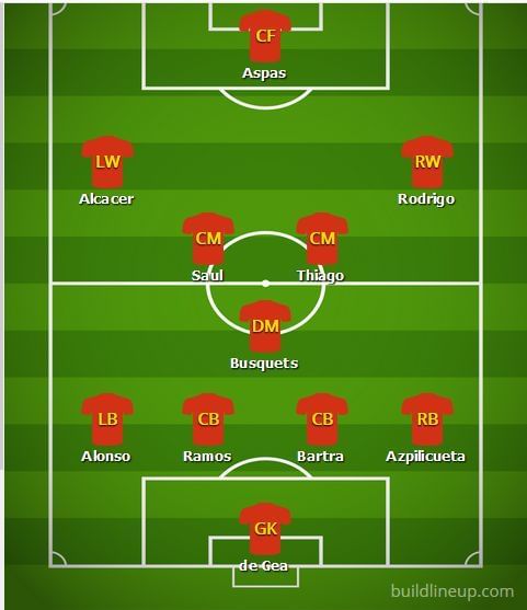 Spain were able to rest a number of key players and have had a day's extra rest before playing England. Marcos Alonso, Sergio Busquets, Rodrigo and Thiago (amongst others) should all return to the starting lineup in what is a very strong eleven from the Spaniards. Rodrigo caused England a lot of problems when the sides met at Wembley, and the Valencia forward should start again, especially after Alvaro Morata failed to net against Wales.