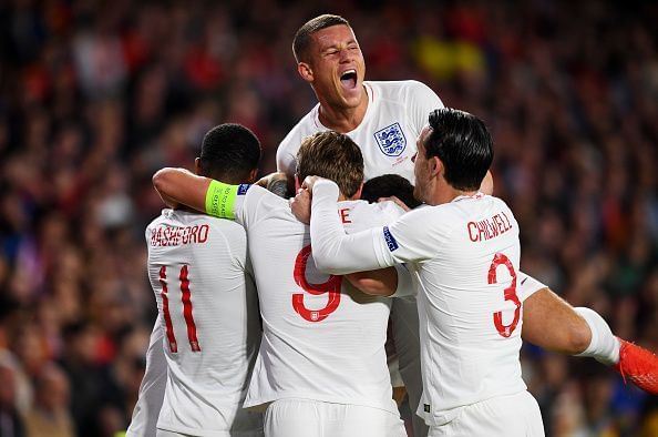 England: 1. Jordan Pickford, 2. Kieran Trippier, 5. Joe Gomez, 6. Harry Maguire, 3. Ben Chilwell, 4. Eric Dier, 7. Ross Barkley, 8. Harry Winks, 10. Raheem Sterling, 11. Marcus Rashford, 9. Harry Kane