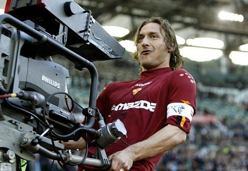 AS Roma’s captain Francesco Totti celebrates after scoring at Rome’s Olympic Stadium, on June 17, 2001.
