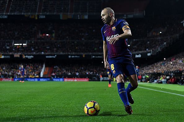 Iniesta was bright in the first half and helped Barcelona establish control at Mestalla. Some of his passing was excellent, but he did not always look entirely comfortable when forced out to the left.
