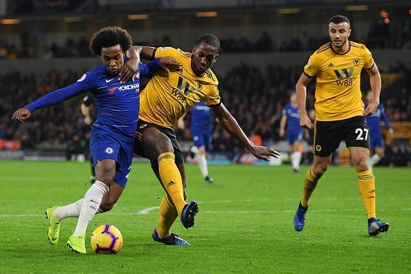 For the second, Willian was caught napping by Joao Moutinho, who laid it through to Matt Doherty. The wing-back perfectly found Atletico Madrid loanee Diogo Jota down the far post. Unmarked, the winger put his side's noses in front and scored the eventual winner.
