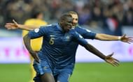 Mamadou Sakho of France, scoring the two goals of the match, celebrates the result of 3-0 against Ukraine within FIFA World Cup 2014 qualifying match on November 19 at Stade de France in Paris, France.