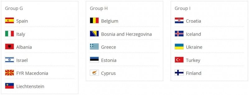 The European Qualifying group includes the hosts Russia and includes 13 qualification slots for the countries from this zone plus the hosts (14 on the whole). 52 member teams divided into 6 pots based on their FIFA ranking will be divided into 9 groups of 6 members each (Except 2 groups that will contain 5 teams).