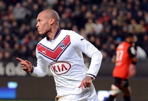 Bordeaux’s French forward Yoan Gouffran celebrates scoring a goal during the French L1 football match between Rennes and Bordeaux on January 12, 2013, at the Route de Lorient stadium in Rennes, western France. Gouffran announced on Tuesday that he is to become the latest Frenchman to join English Premier League strugglers Newcastle in the January transfer window.