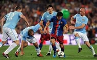 Notice how when Messi has the ball, he is surrounded by players who attempt to give him no space to operate in
