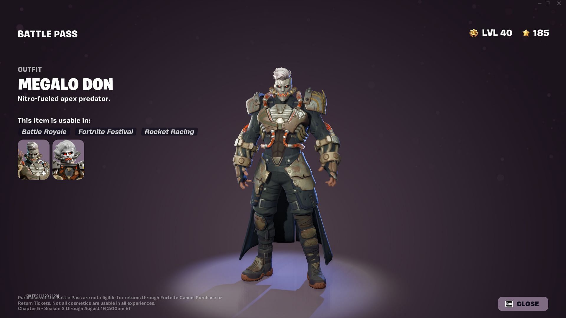Among the best Fortnite Chapter 5 Season 3 Battle Pass Skins, Megalo Don is the master of chaos and unbridled power this season. It beautifully replicates the formidable NPC boss on the map. Players can dive into the game donning this skin and pick up one of the coveted Nitro Fists in Fortnite Chapter 5 Season 3 to complete the menacing look.