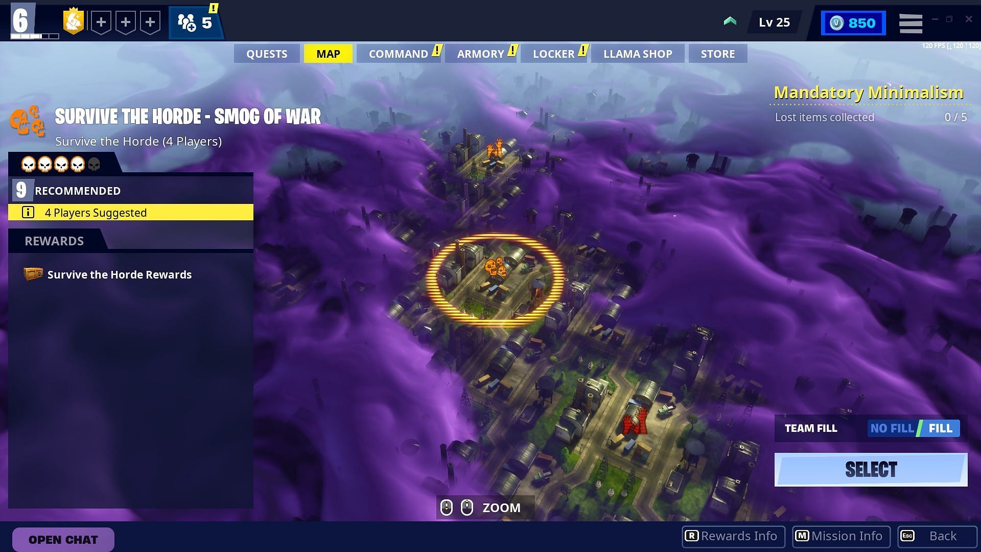 One of the quickest ways to gain monumental amounts of XP to level up fast in Fortnite Save The World is to enable XP Boosters from the Command tab and then select the highest-level missions on the map.