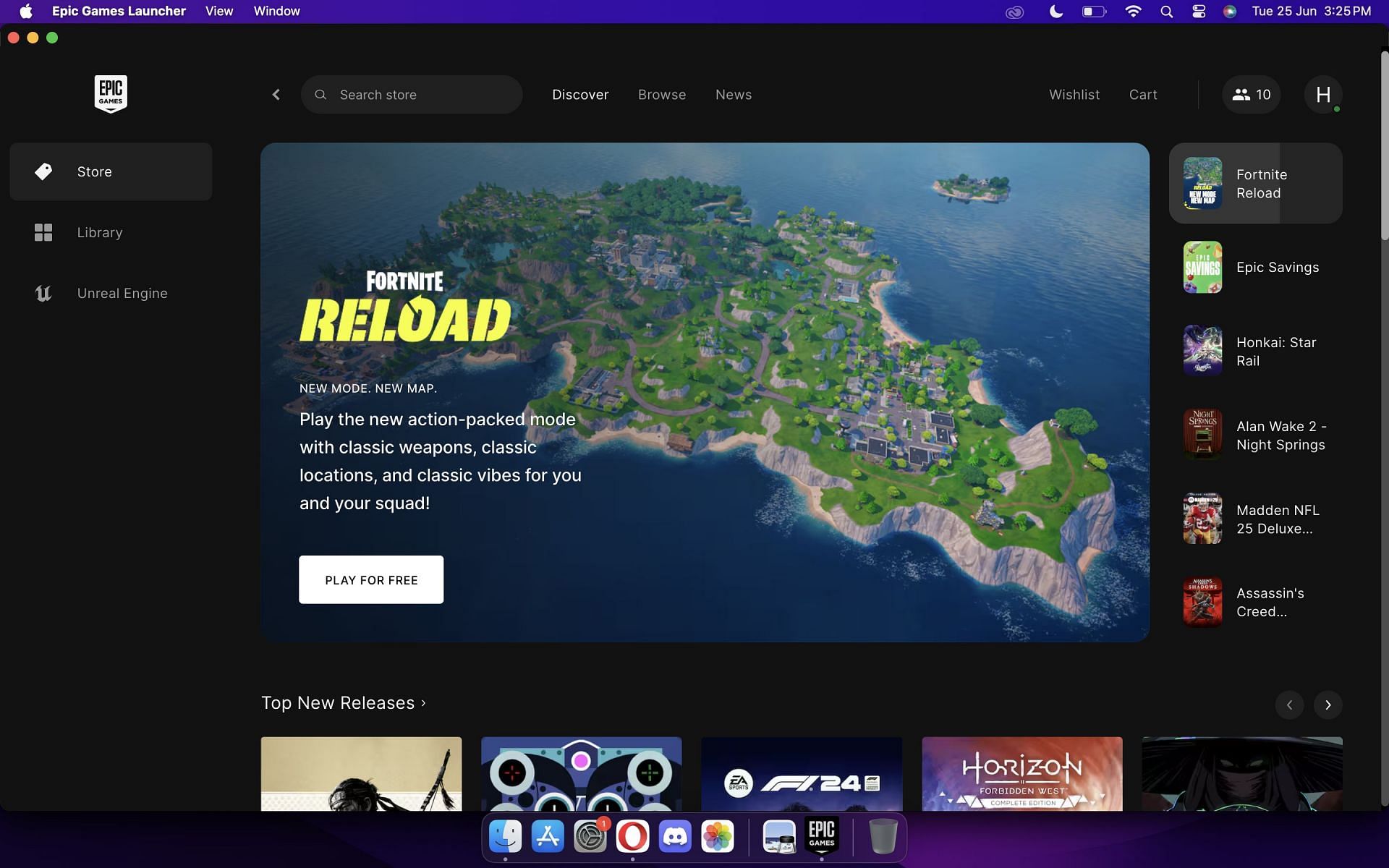 Currently, Fortnite is on the front page of the store promoting the new Fortnite Reload game mode. Alternatively, head on to "Search Store" on the top left, next to the Epic Games logo. Search for "Fortnite" and hit enter.