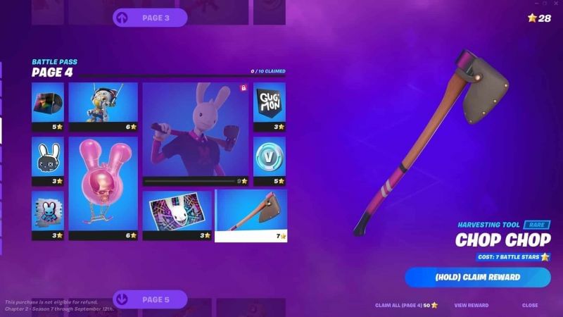 These items include weapons, emotes, skins, and more. Naturally, each item on the page has a different Battle Star value attached to it. Depending on the number of Stars users have, they can choose the items they want to claim.