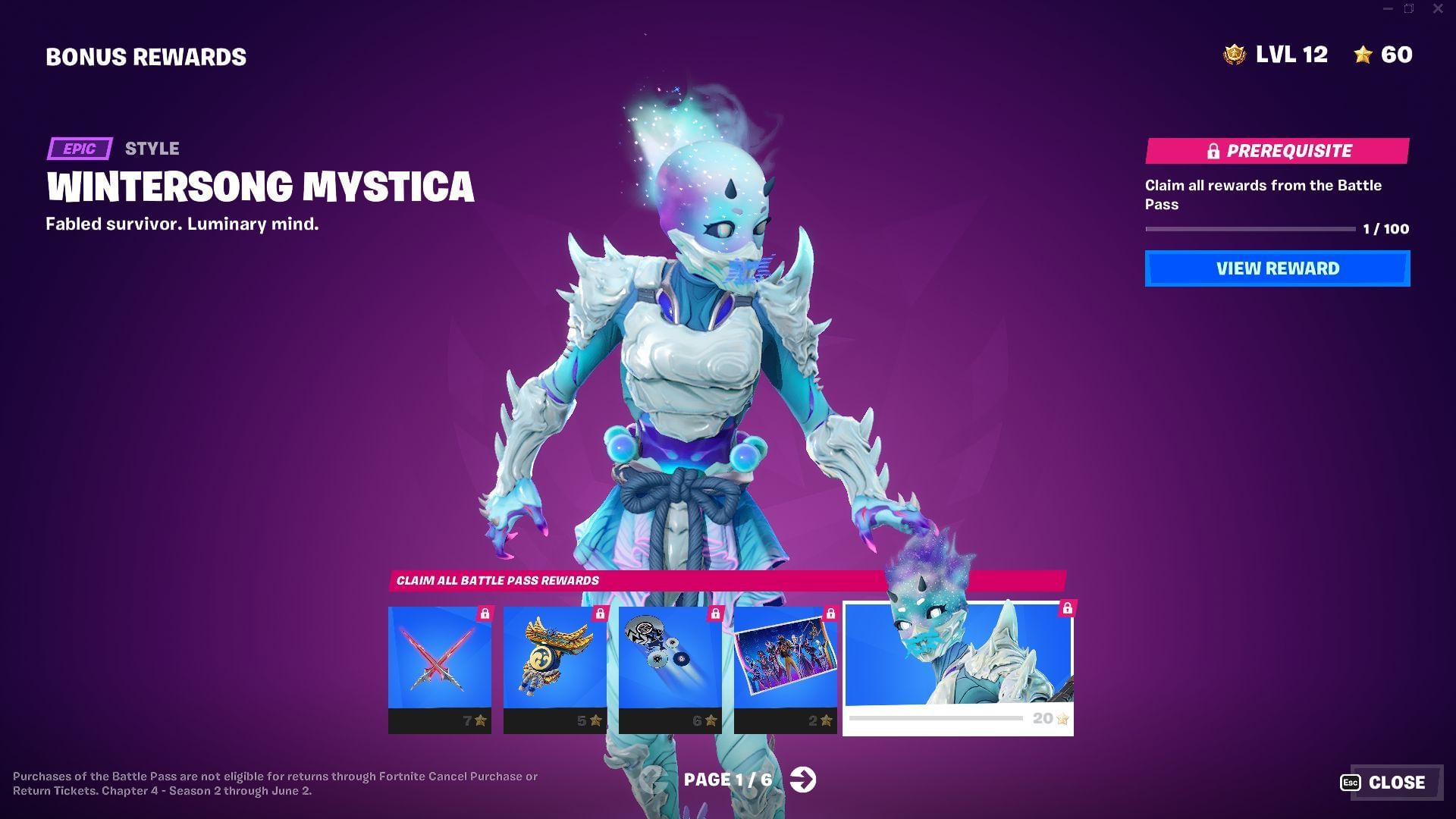 With it being this early on in Fortnite Chapter 4 Season 2, the complete list of Bonus Rewards is unknown. They will be revealed after 15 days, likely to be March 30 or 31, depending on the time zone. That said, there are a total of 30 cosmetic rewards spread across six pages, and it will cost a total of 500 Battle Stars to unlock.