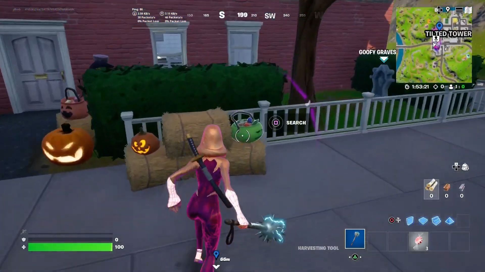 To complete this Halloween challenge, you will first have to find a Pepper Mint consumable item. The easiest way to do this is to land at a popular landing spot, such as Tilted Towers, Chrome Crossroads, or Greasy Grove. These locations have plenty of jack-o'-lanterns that can be broken and will likely drop the consumable item.