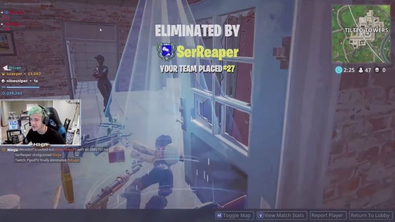 Ninja's wall-building curse in Fortnite continues in the next instance as well.