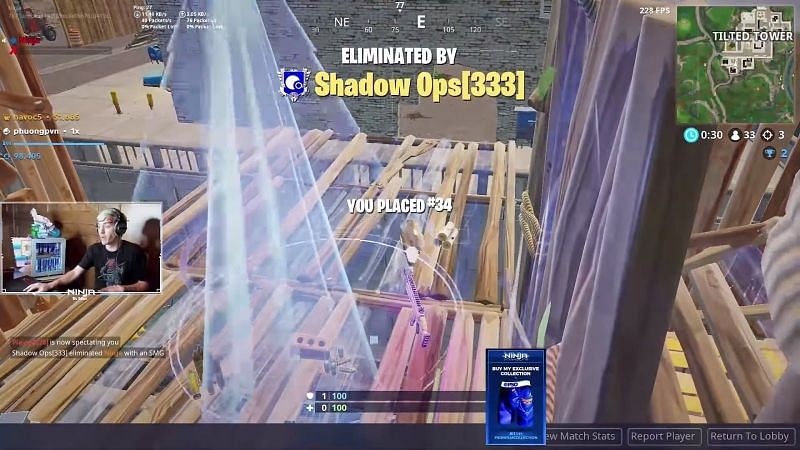 It would seem that when it comes to building walls during high-pressure clutch moments, Ninja is kind of cursed. No matter how skilled he is at the game, he keeps dying in similar situations and never really seems to learn from it. This wasn't the first time that Ninja died while trying to build a wall. Though, in his defence: There was a fence in his way.