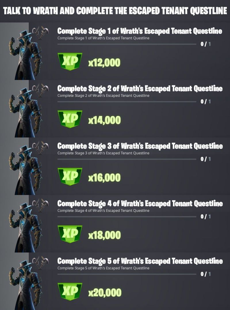 How to complete all Fortnite Season 8 Wrath Escaped Tenant questline challenges