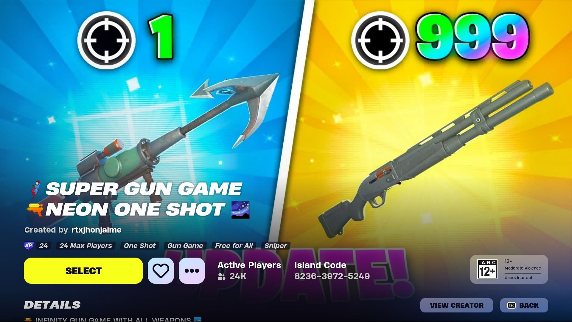 UEFN Map code and how to enter Fortnite Super Gun Game Neon One Shot