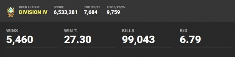 Out of these, 17,978 matches have been Solo. He boasts an even better K/D ratio of 7.29 in the Solo mode, with precisely 5,075 wins. You can see his stats below.