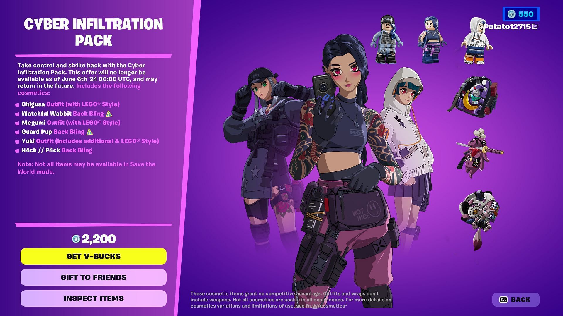 Players interested in obtaining all the cosmetics and items that are part of the Cyber Infiltration Pack can purchase them for 2,200 V-Bucks.