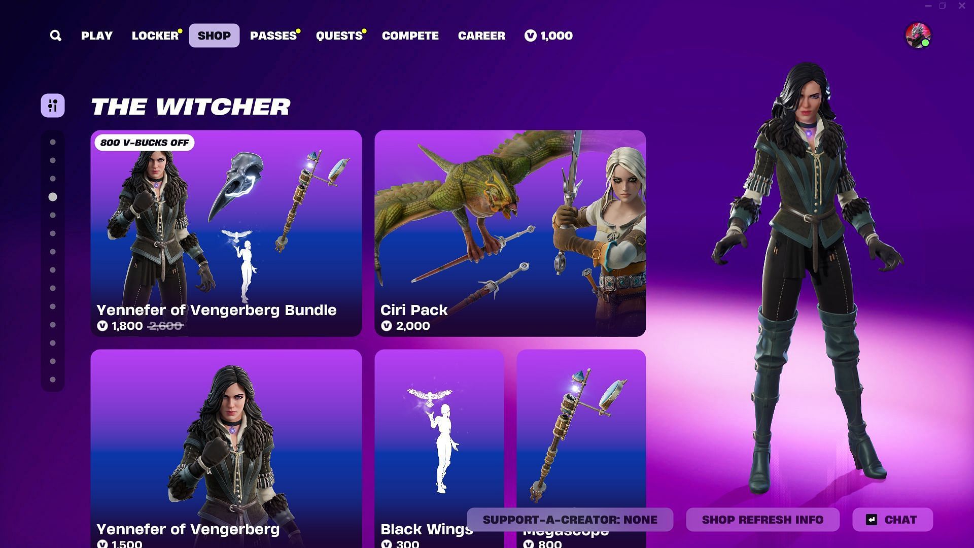 As of March 9, 2025, the Ciri and Yennefer of Vengerberg (Witcher) skins in Fortnite are listed in the Item Shop under the "The Witcher" Tab. They can be purchased via the Ciri Pack and Yennefer of Vengerberg Bundle, respectively. They are both associated with the Silver & Socery Set.