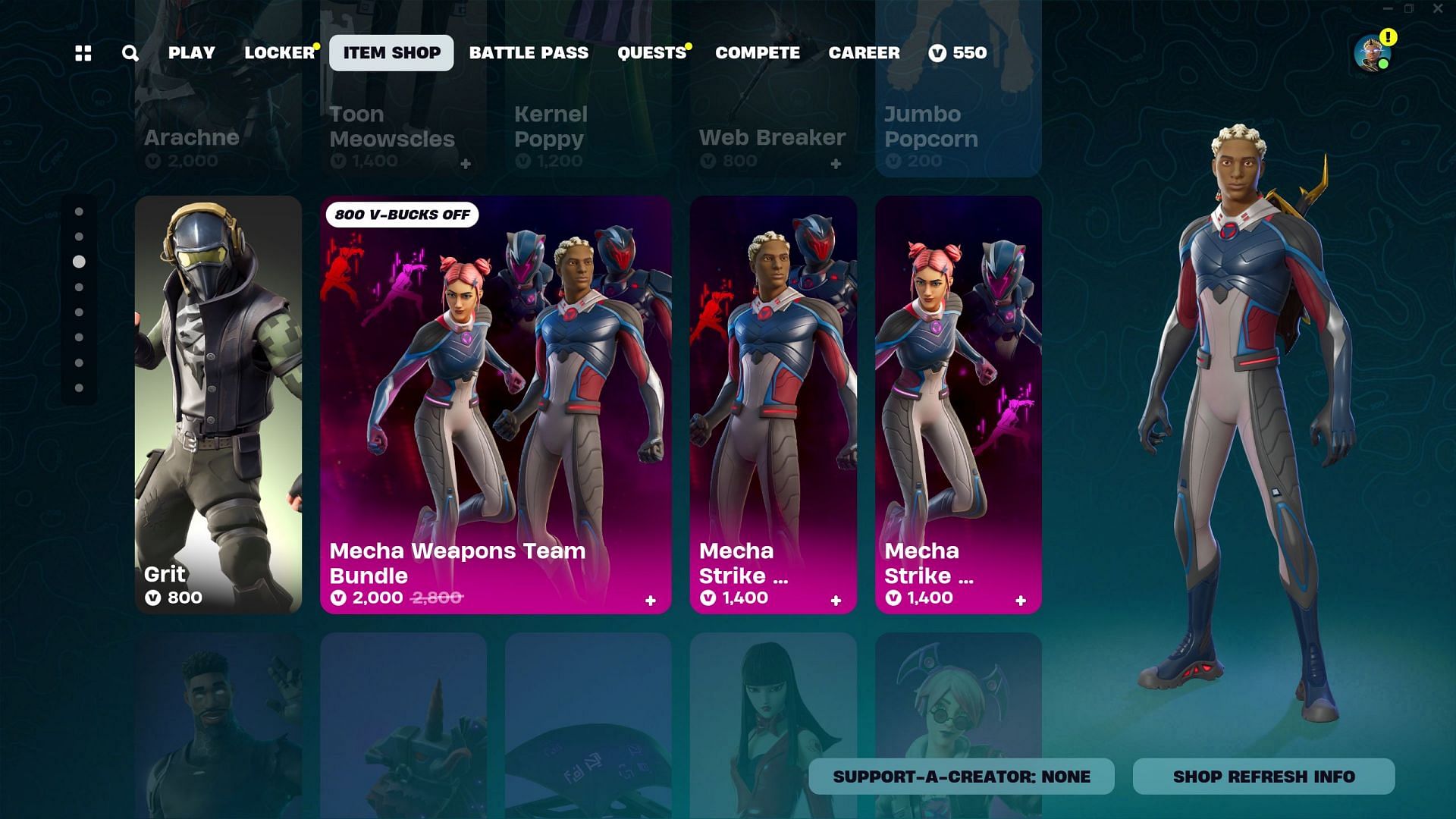 Players interested in obtaining all the cosmetics and items that are part of the Mecha Weapons Team Bundle can purchase them at a discounted price of 2,000 V-Bucks (the actual price is 2,800 V-Bucks).