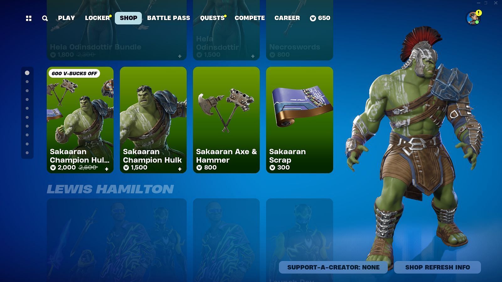 If you are interested in obtaining all the cosmetics and items that are part of the Sakaaran Champion Hulk Bundle, you can purchase them at a discounted price of 2,000 V-Bucks. You can also buy the cosmetic items and the Sakaaran Champion Hulk skin in Fortnite separately.