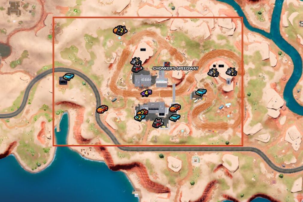 - Land at Chonker's Speedway in a solo match or bot lobby.
