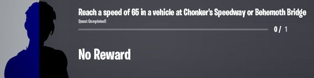 Here's how to reach a speed of 65 in a vehicle at Chonker's Speedway or Behemoth Bridge in Fortnite