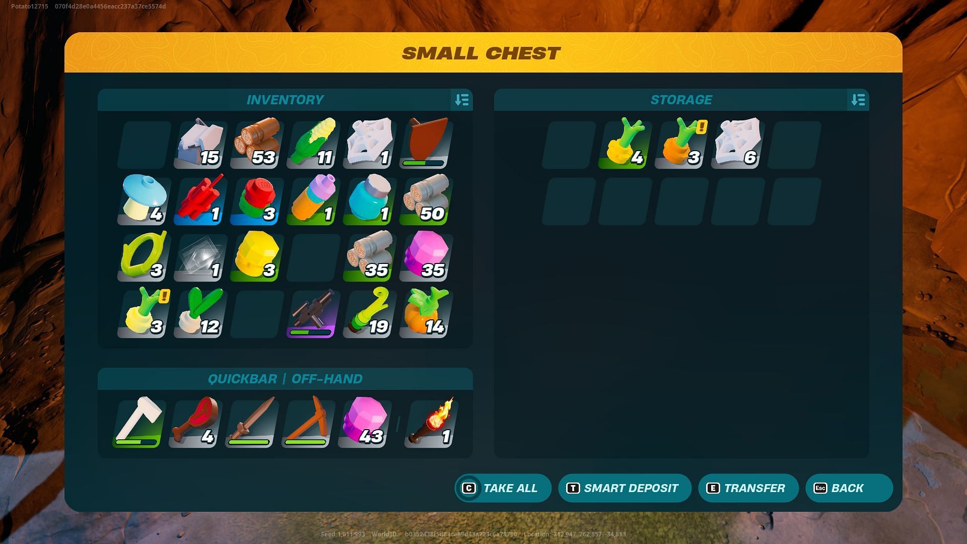 Once you have everything in order, create a Shovel (Uncommon) using the Crafting Bench and start digging in the dirt. Depending on which biome you're in, the type of seeds will vary. Lastly, a Shovel (Common) also works great for digging, but I haven't been able to get seeds using it. It only gives Soil.