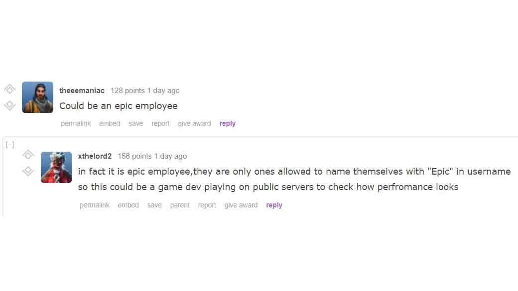 Considering that Epic Games developers rarely use public Fortnite servers to test the game, this theory is very unlikely. Furthermore, the Reddit user Alukarulz provided only an image of his team, which may indicate that it was edited.
