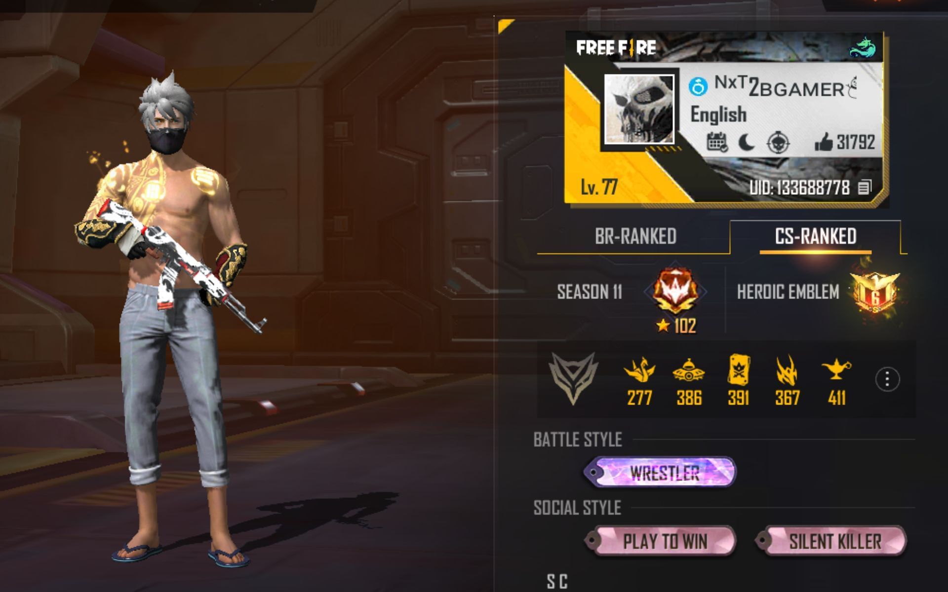 2B Gamer’s Free Fire MAX ID is 133688778. Listed below are his stats: