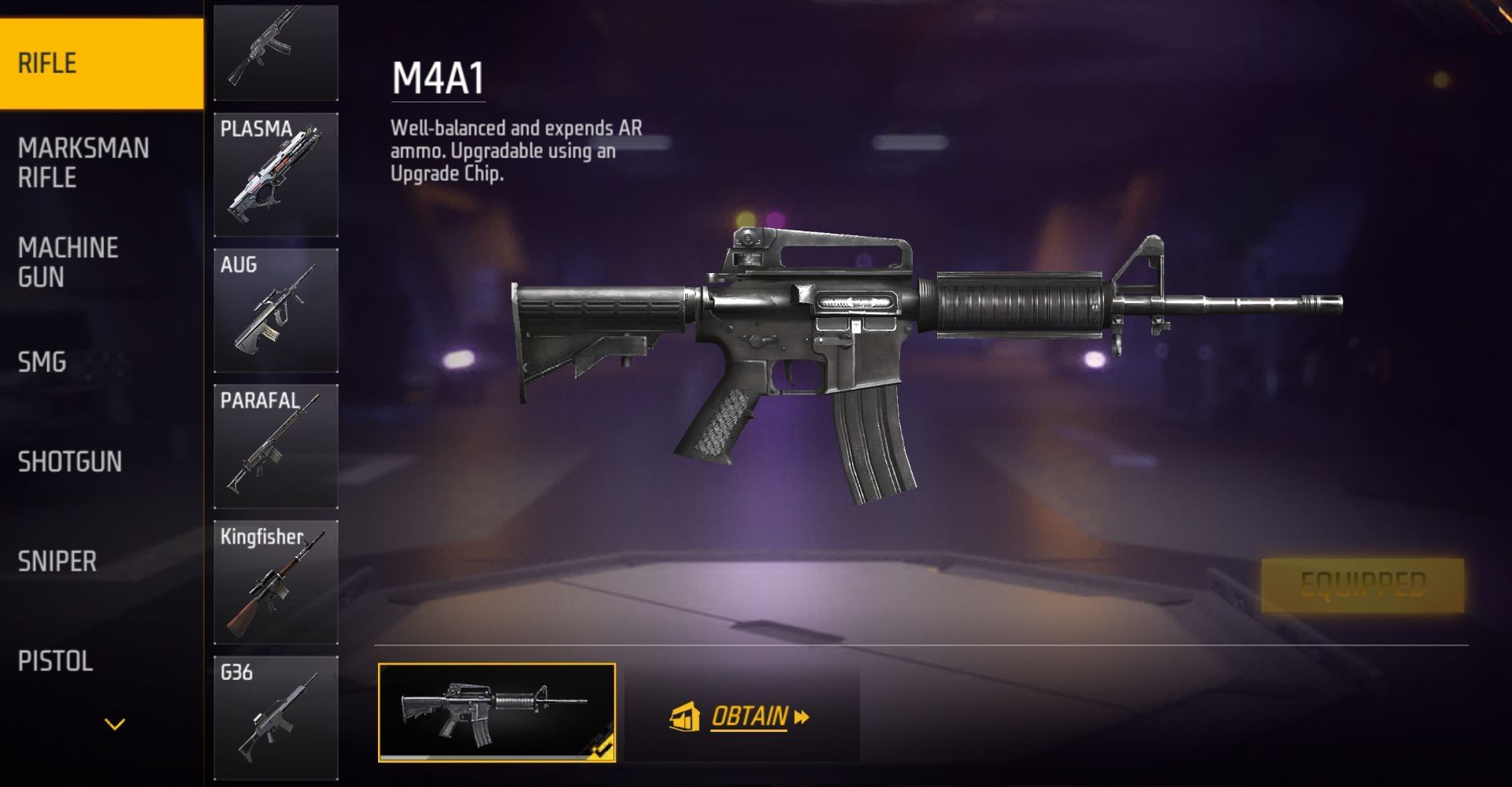 M4A1 is a popular rifle in several video games, and boasts great steadiness and damage stats, making it a favored choice for many Free Fire MAX players. Its good accuracy is another plus point, as gamers will not end up missing shots.