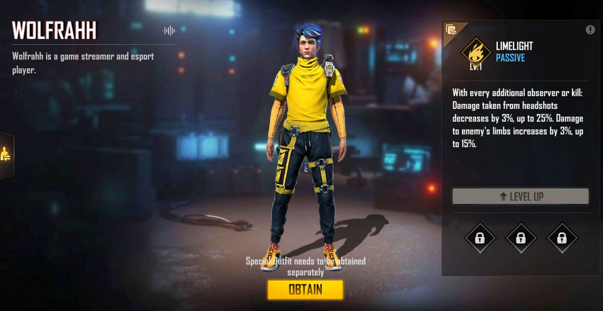 With every additional observer or kill, Wolfrahh's ability reduces the damage taken from headshots by 3%, up to 25%. Moreover, the damage to the enemy’s limbs increases by 3%, up to 15%.