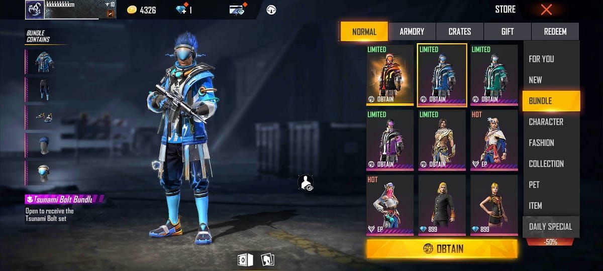 The Tsunami Bolt bundle is another great bundle available to players in Free Fire. It consists of some amazing attire for players to use on their characters. Players can redeem the bundle from the redeem store of Gaming Dice with the help of 175 redeem tokens. Players will get the following items in the complete bundle: