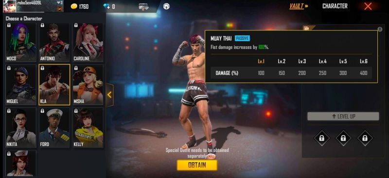 Muay Thai is a Passive ability of the Free Fire character, Kla, that grants a 100% increase in fist damage. Kla can arguably be considered the best character for Free Fire Factory challenge.