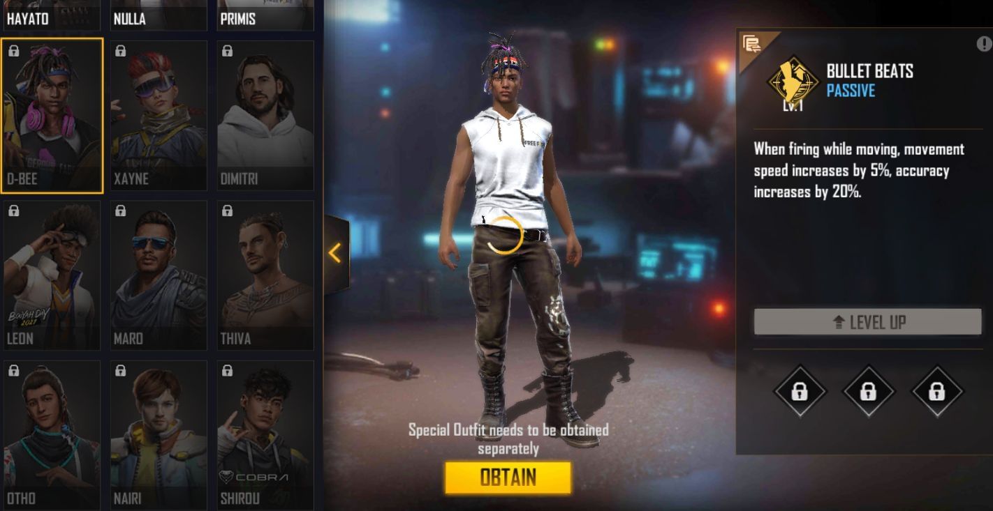 D-bee is the best choice for beginners as he helps in improving accuracy. He also improves movement speed, which makes it difficult for enemies to aim and shoot.