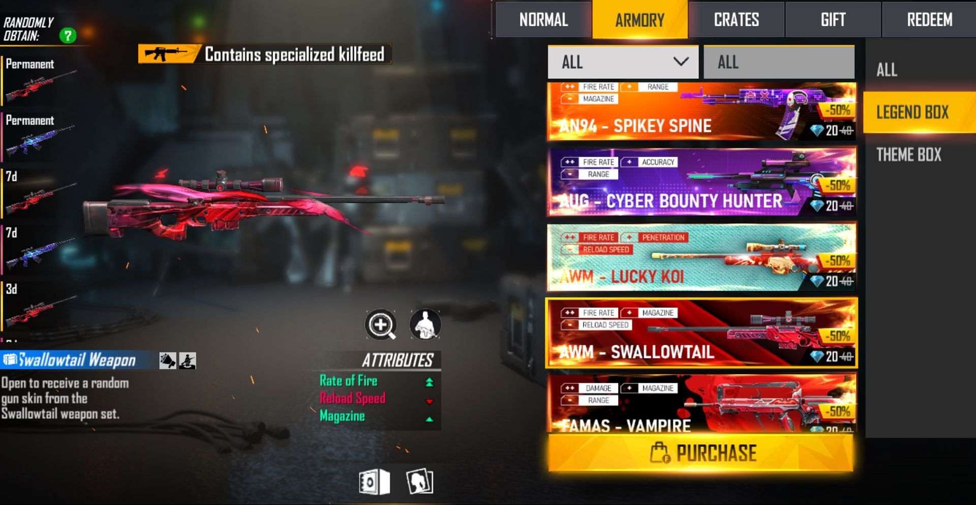 Many people use the AWM to engage in mid and long-range fights in Free Fire, and the stat boost from the Duke Swallowtail can help them even more. The skin also has an eye-catching appearance. Users will have to resort to the Swallowtail Weapon Loot Crate to get it.