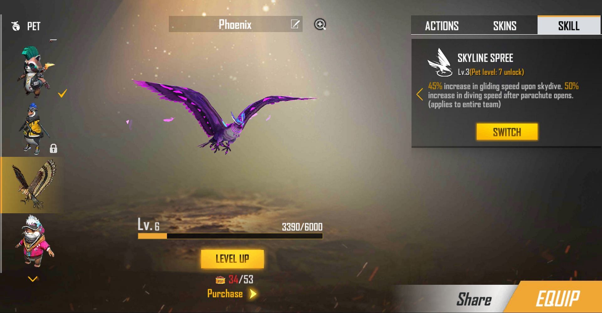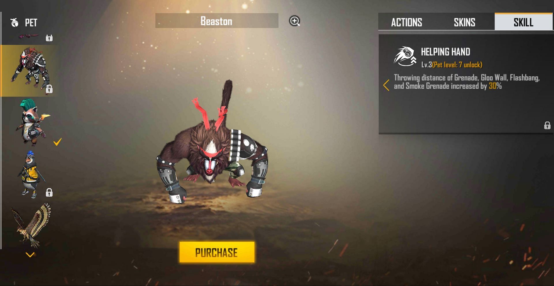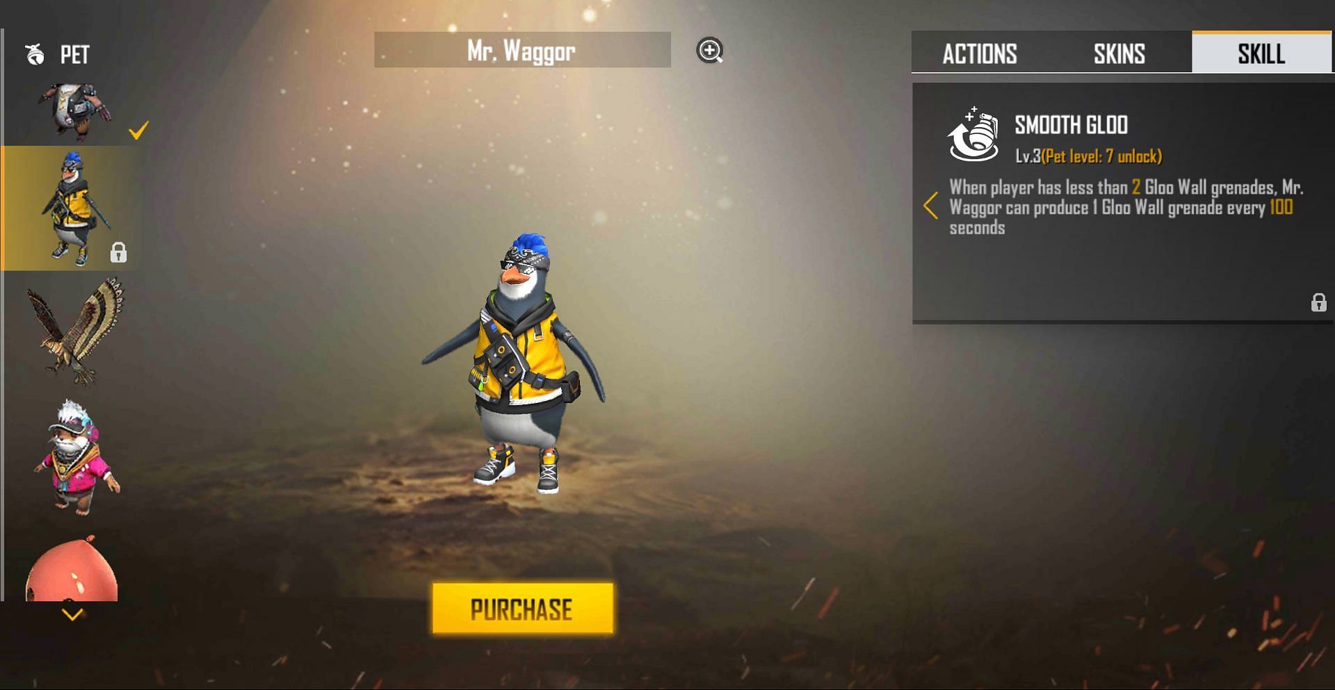 Rockie is the perfect pet to pair with those characters that have an active ability in Free Fire. With Stay Chill equipped, the cooldown time of the active skill decreases by a total of 6%.