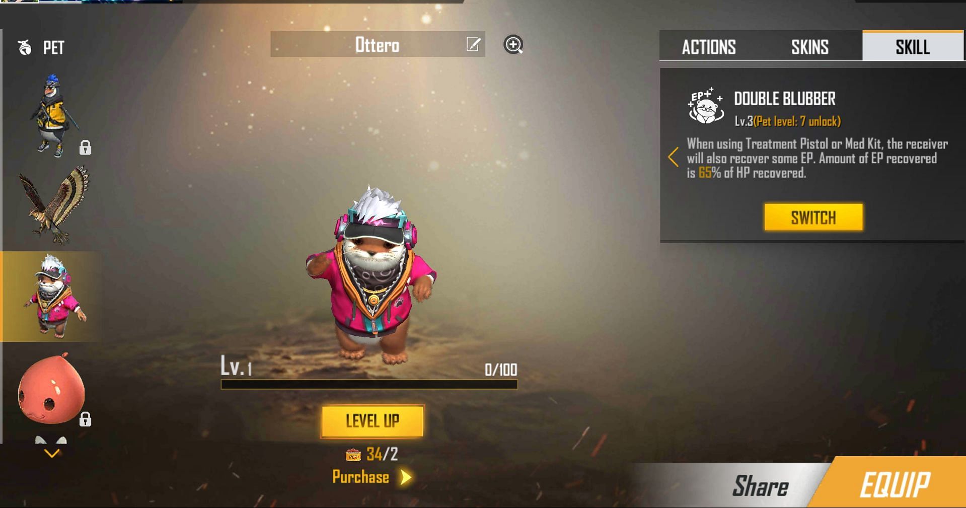 Ottero is another excellent pet that is on par with Detective Panda in Free Fire, and players recover a certain amount of EP when using a Treatment Pistol or a Medkit.