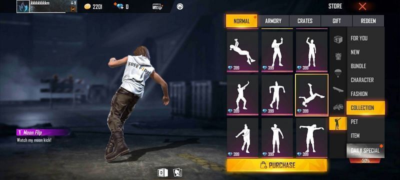 Moon Flip is also a good emote for gamers looking to collect legendary emotes in their inventory. It can be bought for 399 diamonds in the game and sees the character doing an impressive backflip.
