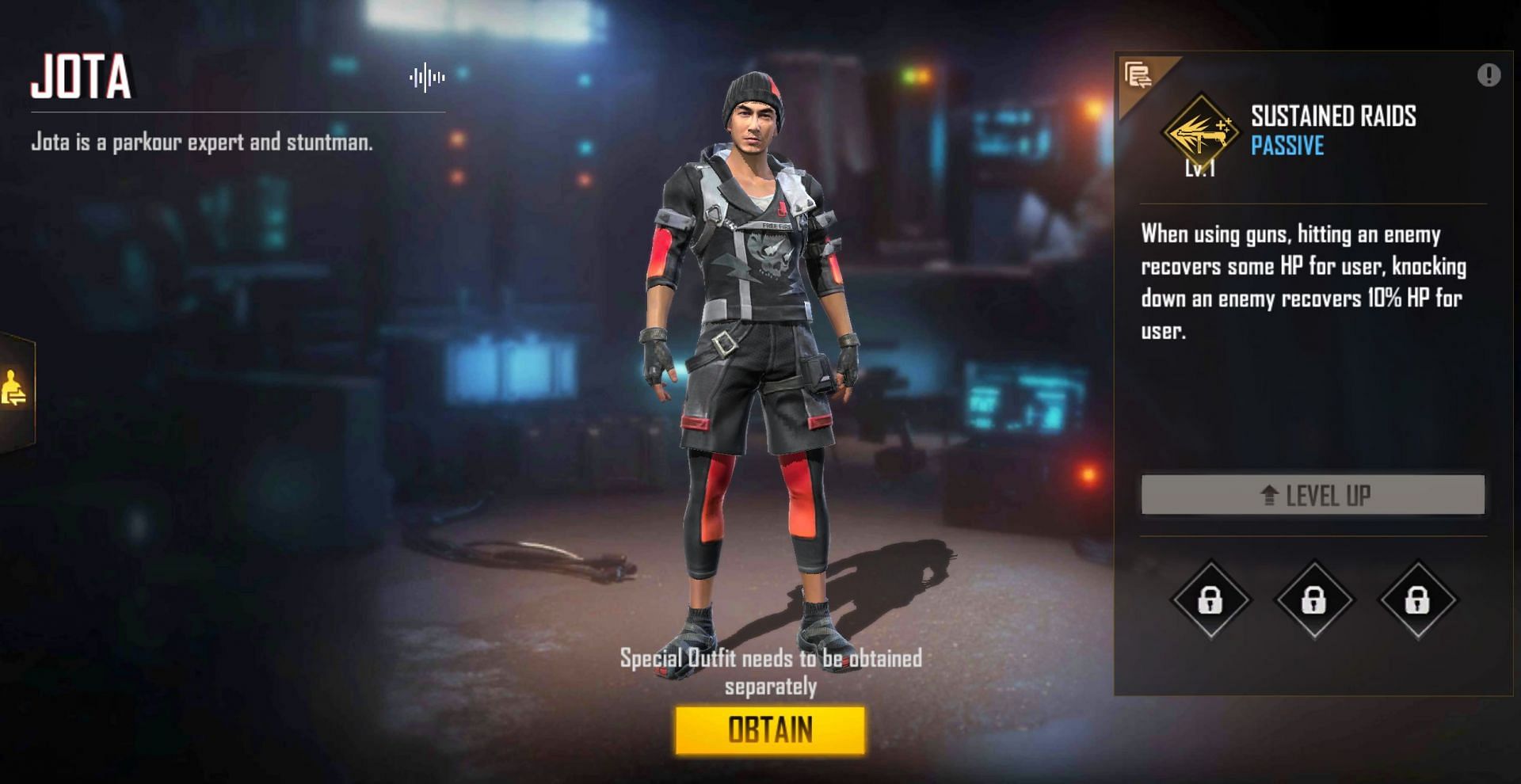 Jota is perhaps the finest character in the game, having a passive skill, and Sustained Raids provides players with some health every time they hit an opponent with a gun. Additionally, if they take down a foe, 10% of HP gets automatically restored.