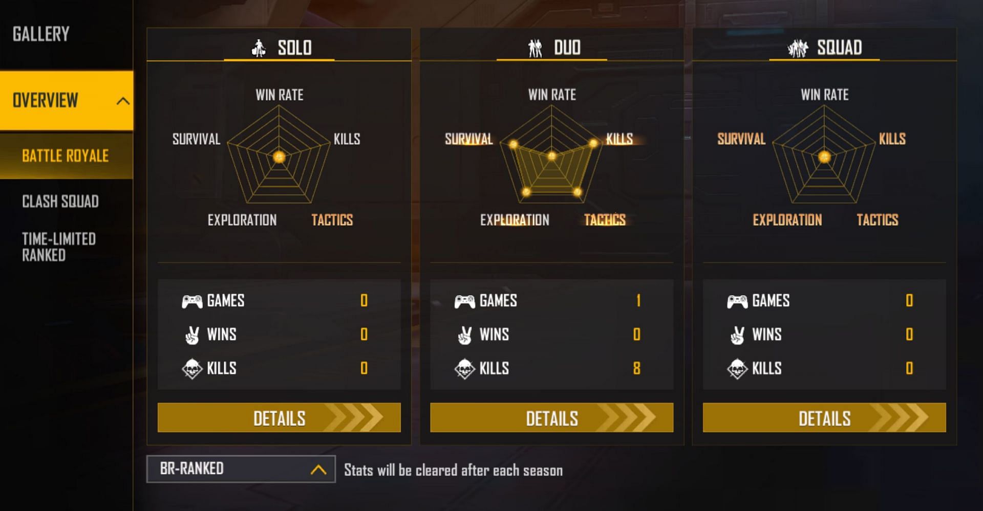 Apart from this, he has not played any games in solo or squad modes.
