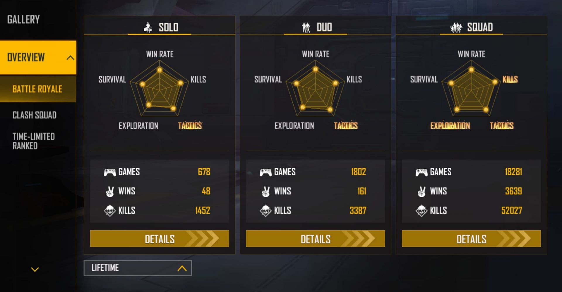 The main factors to consider when comparing the stats Amitbhai and Gaming Tamizhan in Free Fire are their K/D ratio and win rate. When looking at lifetime stats, the former has better stats in all three modes: solo, duo, and squad.