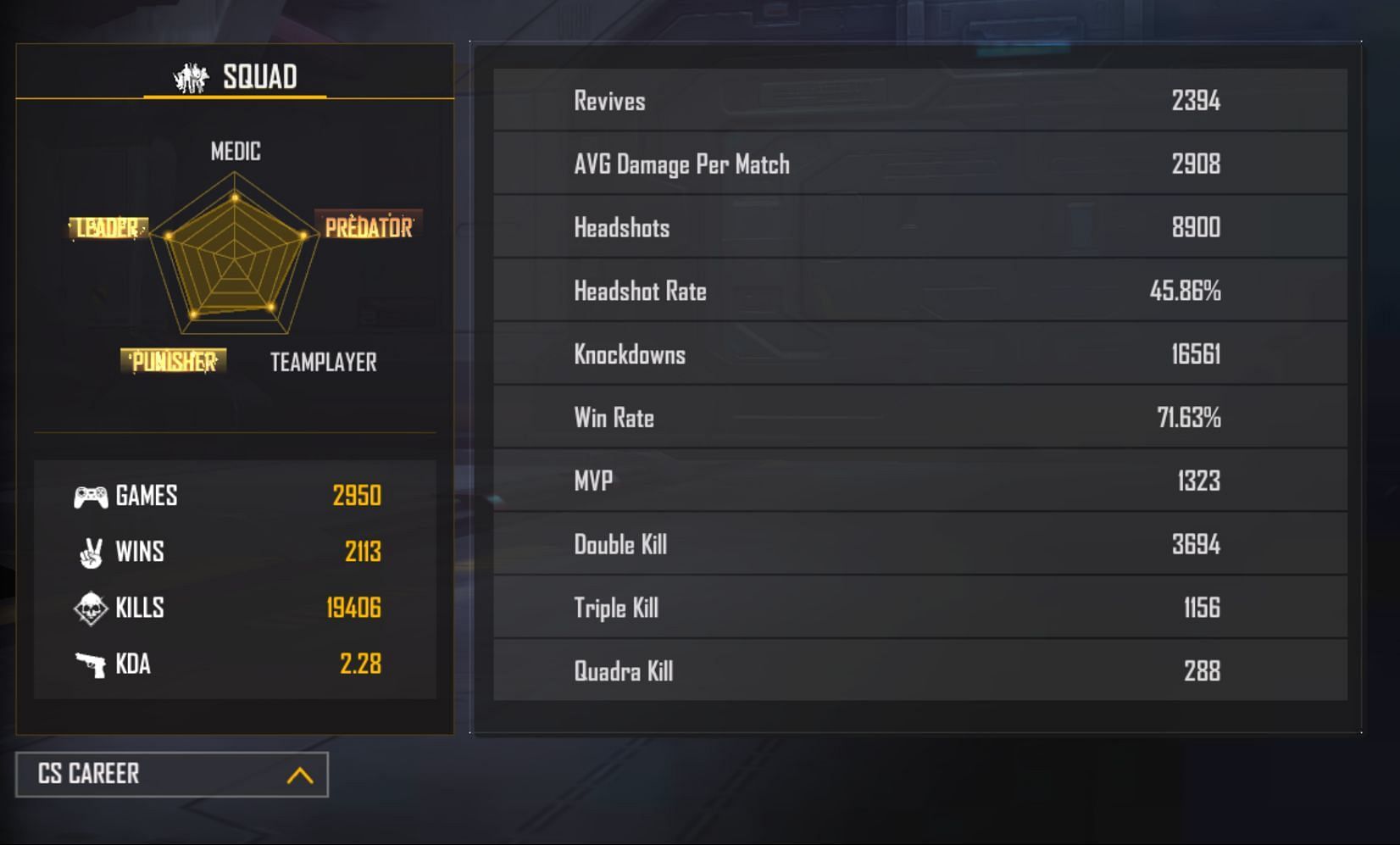 Ankush FF has played and won 2113 of the 2950 Clash Squad games in the battle royale title altogether, converting to a win ratio of 71.62%. With 19406 kills to his credit, the YouTuber maintains a KDA of 2.28 and an average damage per match of 2908.