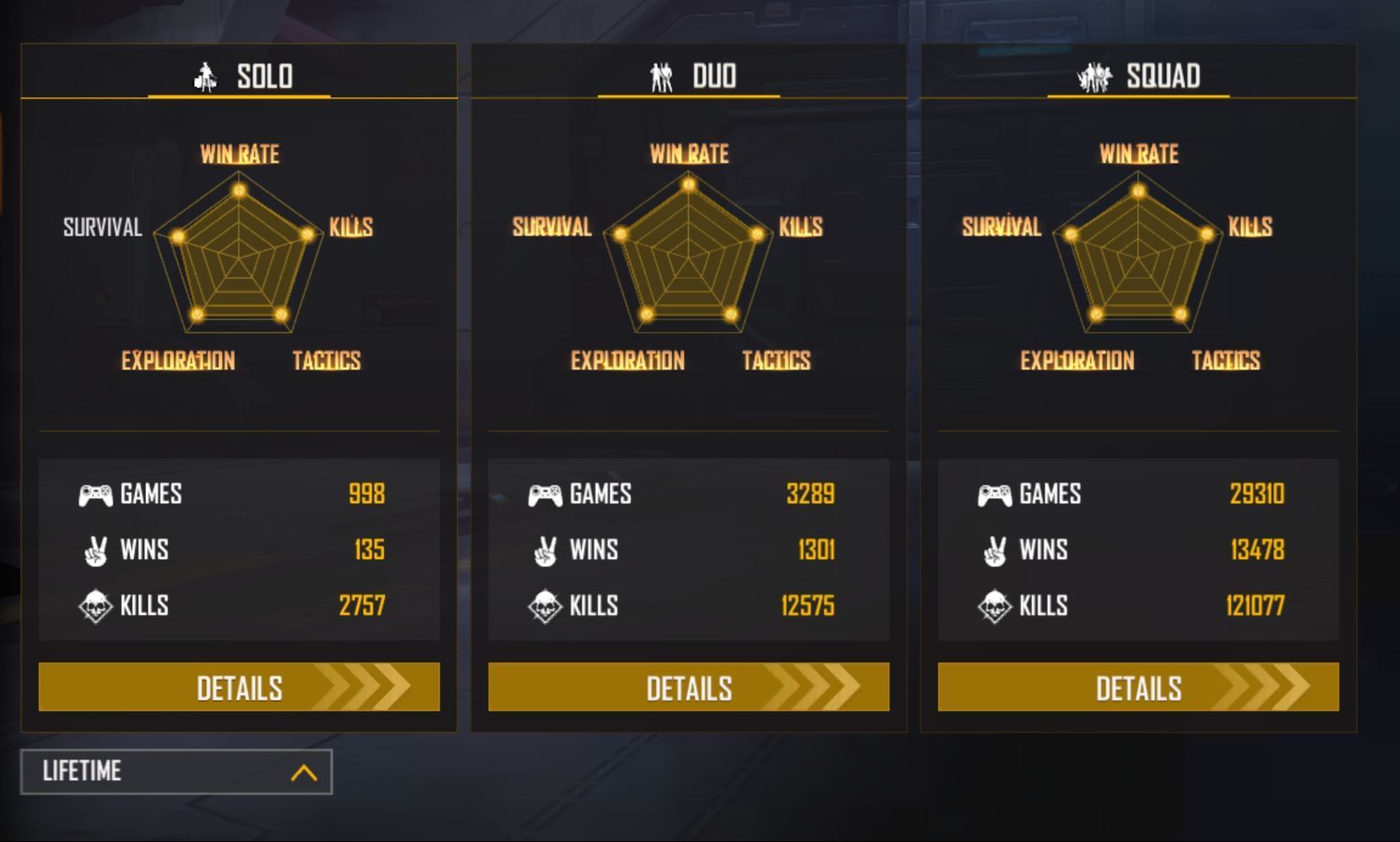 Ankush FF has played under 1000 solo games and has managed to remain defeated in 135 instances, acquiring a win ratio of 13.52%. He churned out 2757 eliminations, resulting in a kill-to-death ratio of 3.19.