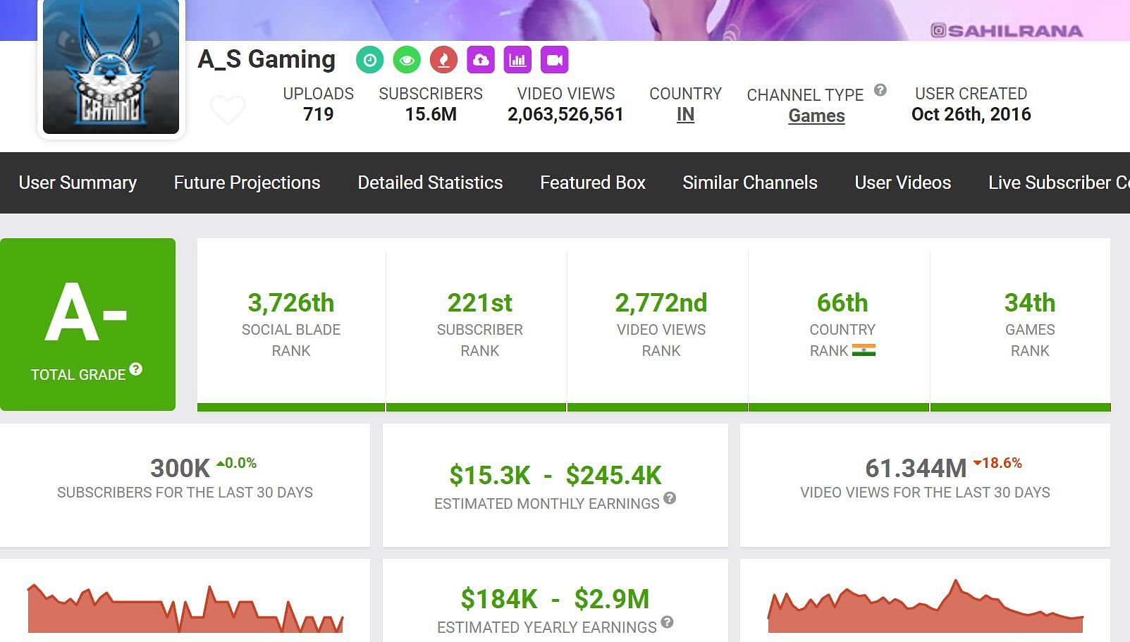 According to the Social Blade website, the monthly income of AS Gaming is between $15.3K and $245.4K.