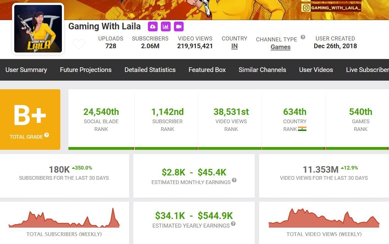 According to Social Blade, she has gained 180 thousand subscribers and 11.353 million views in the last 30 days alone, which is a clear display of her growing fame.